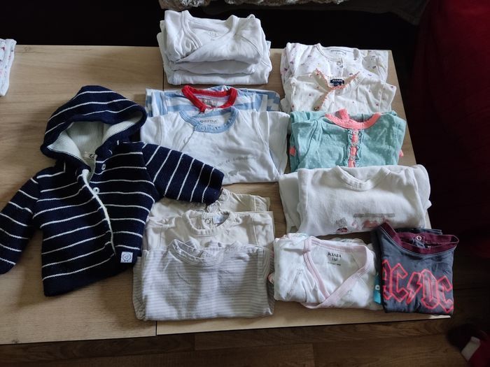 2 tee shirt manche courte 3 haut manche longue 1 solopette 2 Body manche courte 3 Body manche longue 5 Pyjama léger 1 veste 2 gilet en laine
