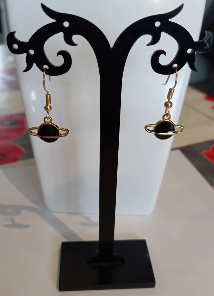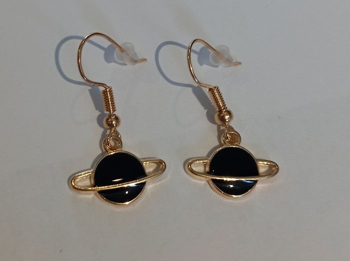 Boucles d'oreilles planète noire et dorée - photo numéro 1