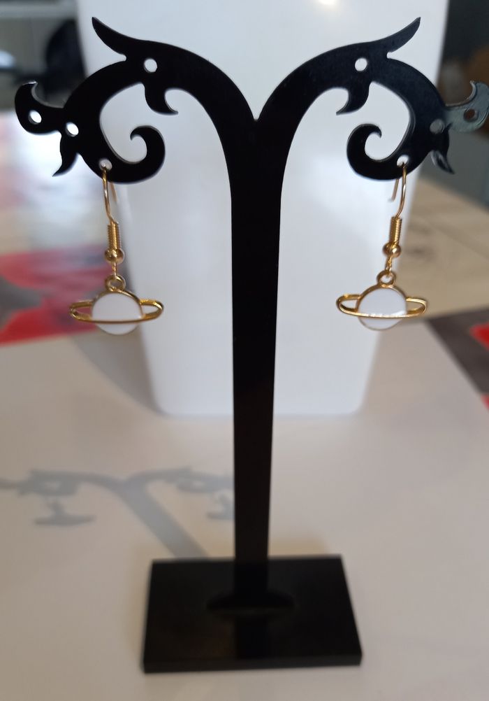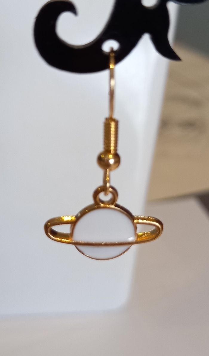 Boucles d'oreilles planète blanche et dorée - photo numéro 3