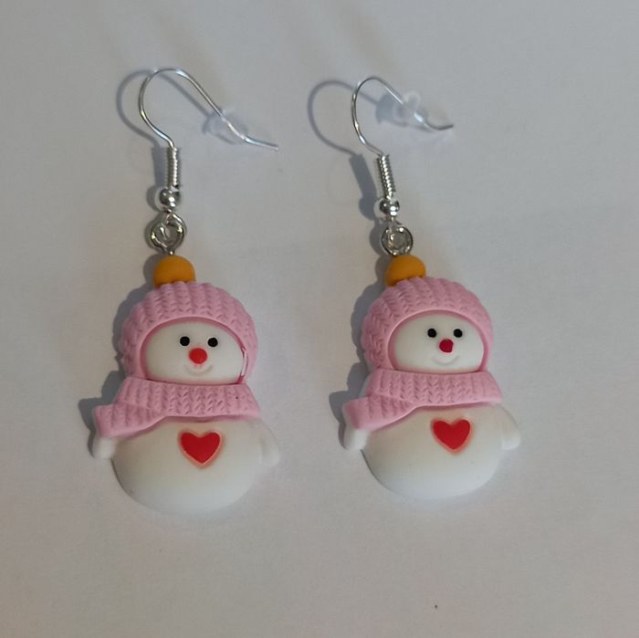 1 jolie paire de boucles d'oreilles motif bonhomme de neige. Coloris argenté, blanc et rose. Hauteur totale : 4,5 cms. Boucles neuves sous blister. N'hésitez pas à regarder mes autres ventes. Envoi rapide et soigné.