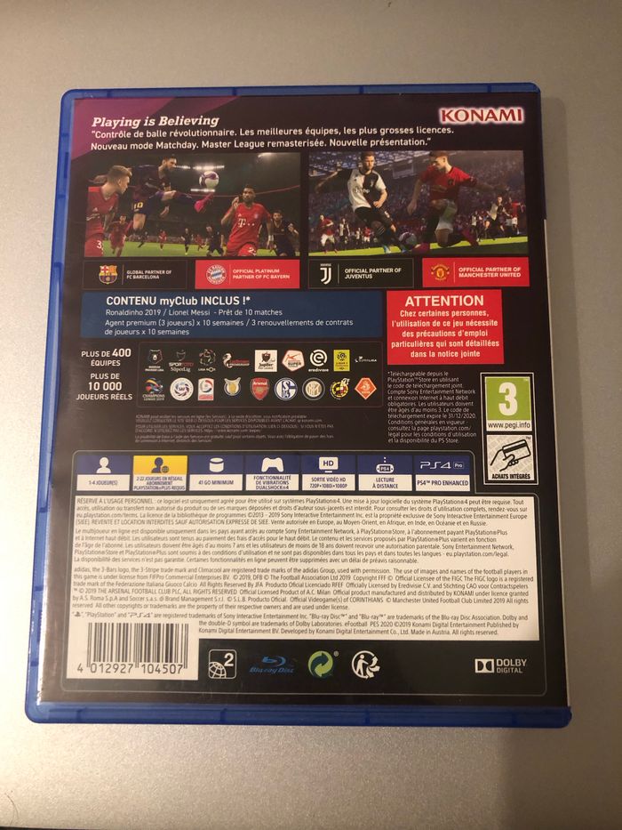 Jeu ps4 PES 2020 Neuf sans étiquette