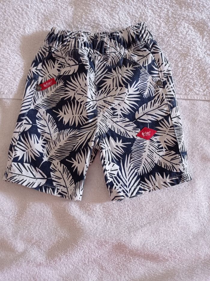 Bermuda pour garçon blanc bleu avec feuilles super jolie marque Lee Cooper taille 9 mois avec deux poches super jolie en tissu - photo numéro 1