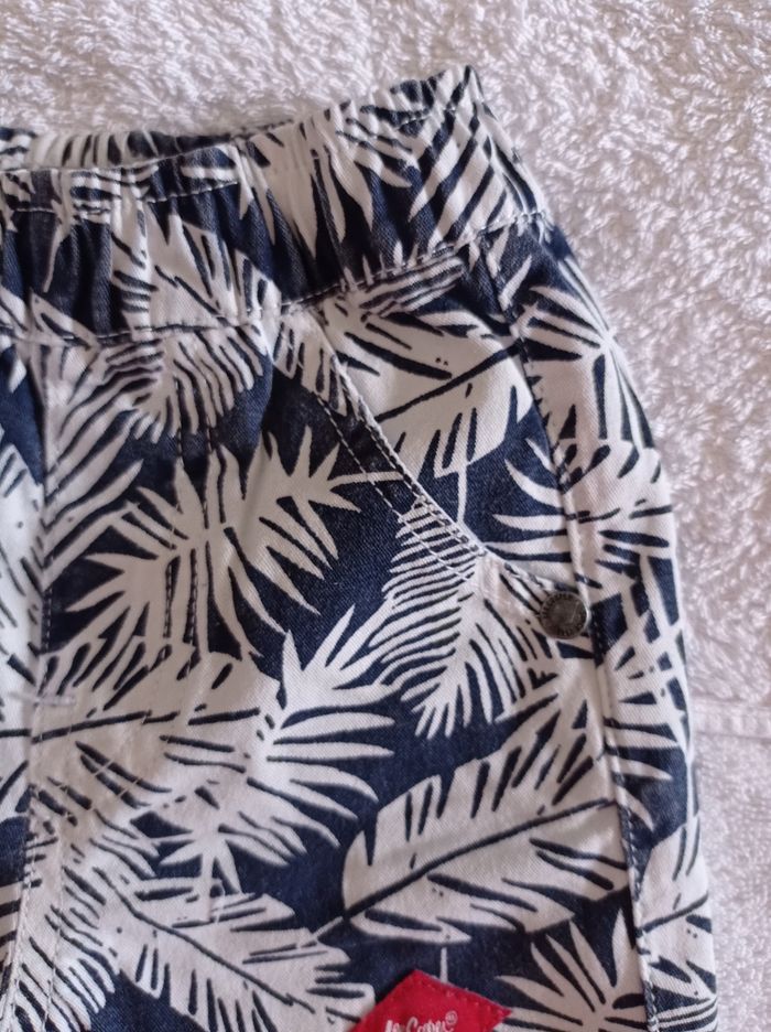 Bermuda pour garçon blanc bleu avec feuilles super jolie marque Lee Cooper taille 9 mois avec deux poches super jolie en tissu - photo numéro 9