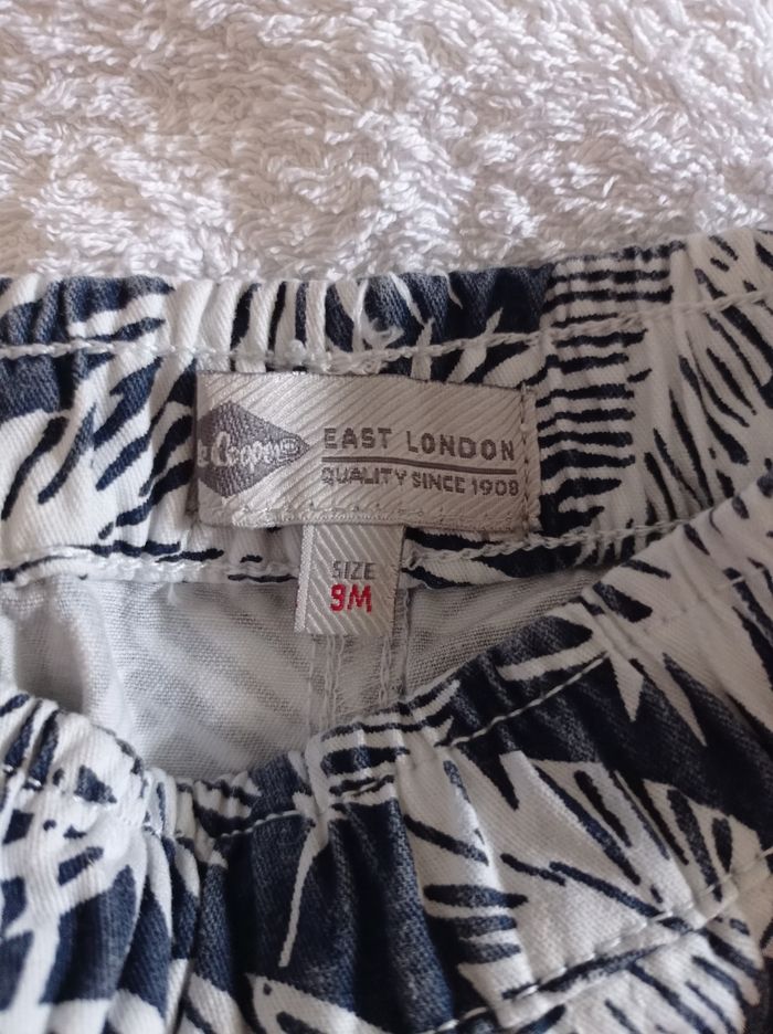 Taille 9 mois marque Lee Cooper bermuda pour petit garçon bleu à feuilles blanches de poche taille élastique super jolie super agréable en tissu