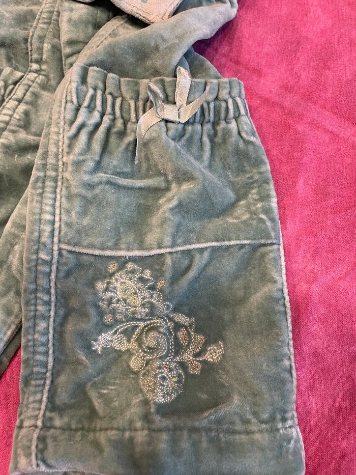 Pantalon en velour vert d’eau avec broderies 3 Lois - Kitchoun