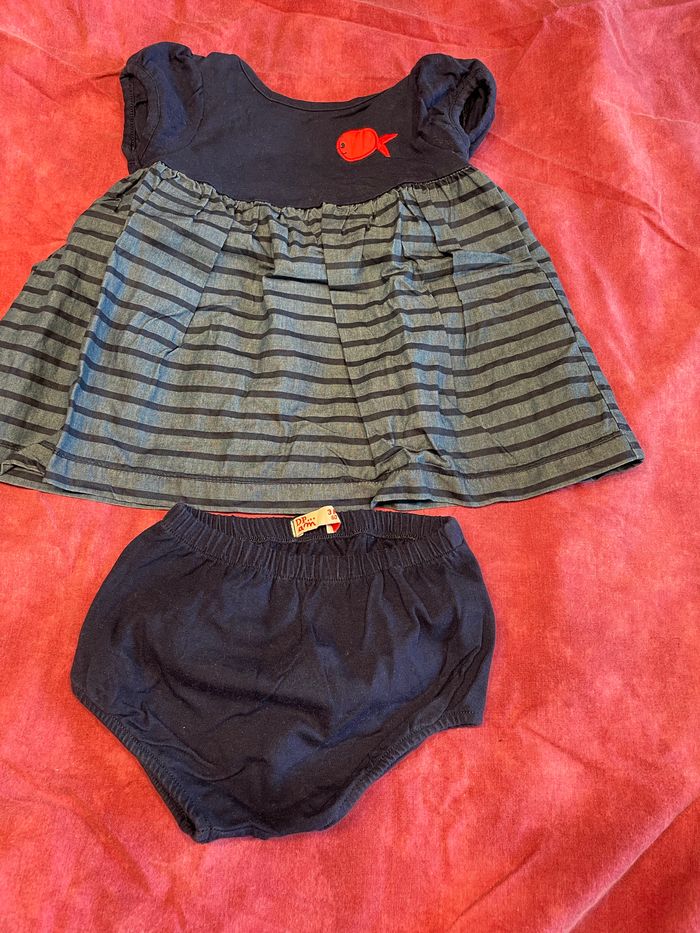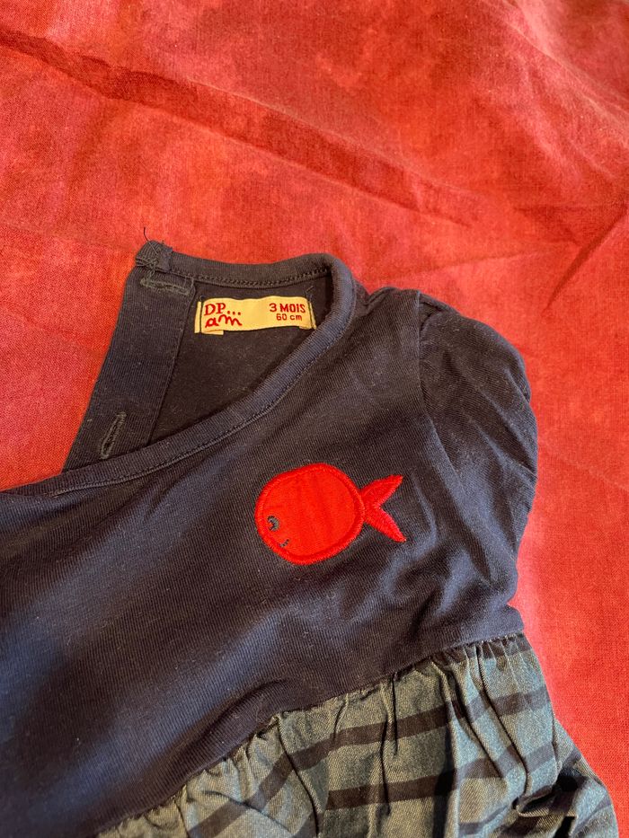 Ensemble Tunique et culotte Haut Bleu marine - poisson rose / bas jean/bleu marine 3 mois - DPam