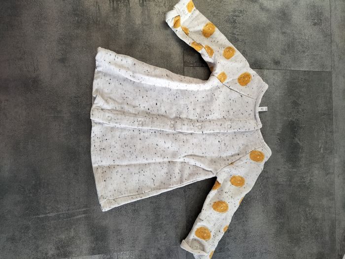 Robe neuve Fermeture par l'arrière avec 6 pressions. Petite souris 🐭 sur le devant Taille 3 mois 60 cm Coloris blanc grisé avec touche de jaume #melanie43700vetementsbebe3mois #melanie43700