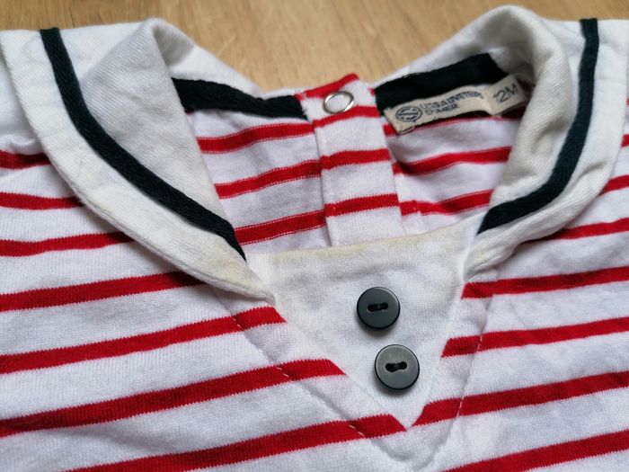 Polo manches courtes de la marque sauveteur en mer en taille 12mois. Le col est jaunis. #sdr0vetementsbebe #sdr0vetementsbebe12mois #sdr0teeshirts