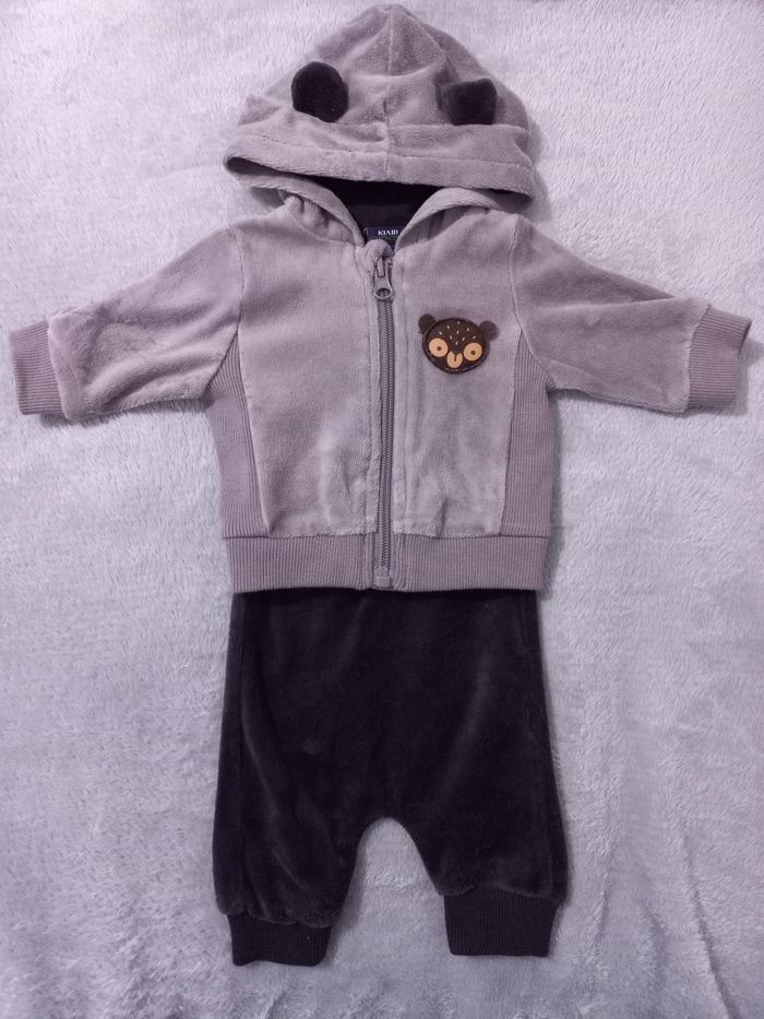 1 ensemble tout doux en velours pantalon gris foncé et veste gris clair kiabi