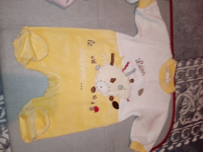 Grenouillère en velours jaune et blanc Taille 1 mois