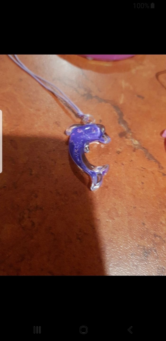 Ensemble comprenant 2 colliers avec pendentifs dauphin et un bracelet. Le tout rangé dans une pochette en velours