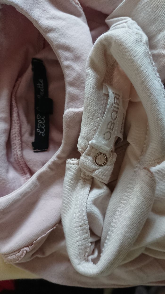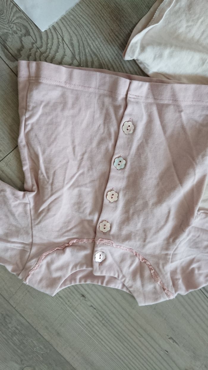 Lots de deux tee shrit manche longues avec pression a l'arrière et l'autre a l'avant de couleur rose J'ai d'autres petit article bébé dans mon dressing