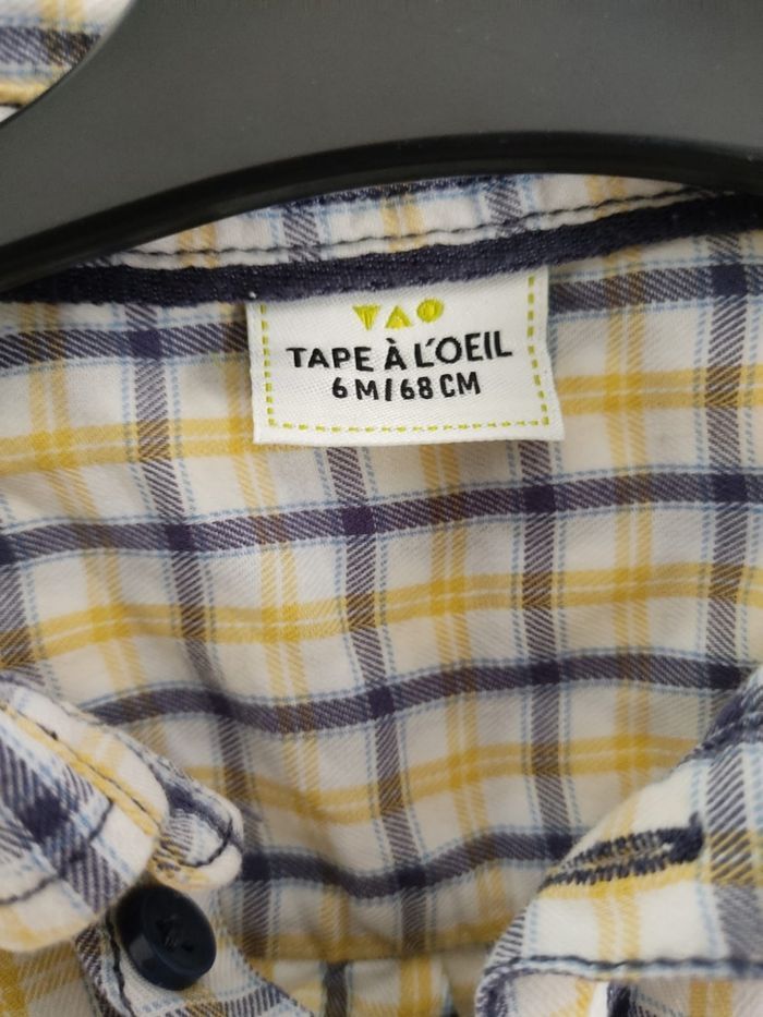Chemise Tape à l'oeil à carreaux pour bébé garçon Peut se transformer en manches 3/4 grâce à des boutons Taille 6 mois Très bon état, très peu portée