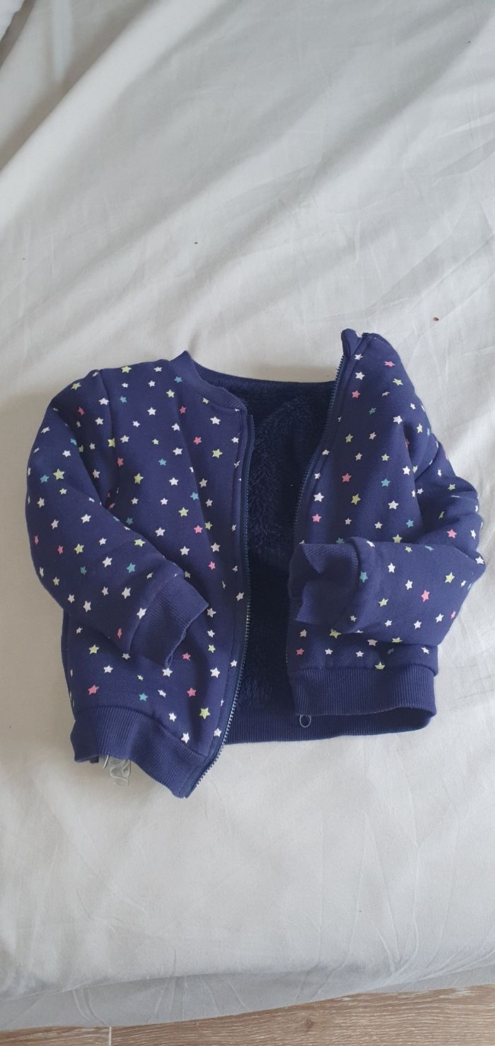 Gilet à zip réversible en bon état. Motif licorne et étoile.