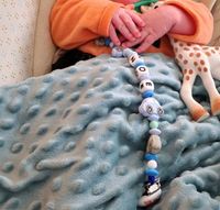 Attache tetine soit en bois et perle prénom en plastique ou tout en silicone ou mélange possible. Avec ou sans prénom Possible de le mettre sur tetine ou doudou afin d éviter de les perdre. Fait à la demande
