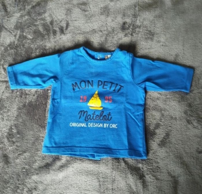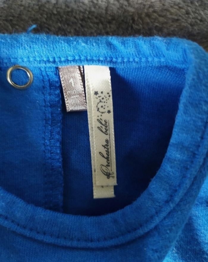 T. Shirt manches longues bébé garçon Orchestra Ouverture pressionnée dans le dos sur toute la hauteur Taille 1 mois Porté quelques fois
