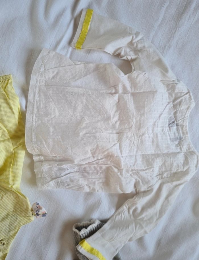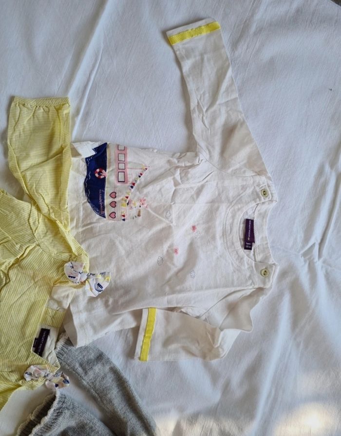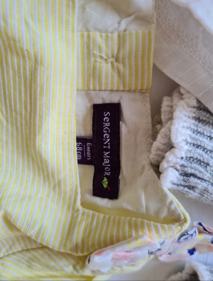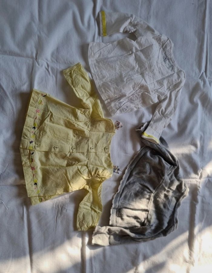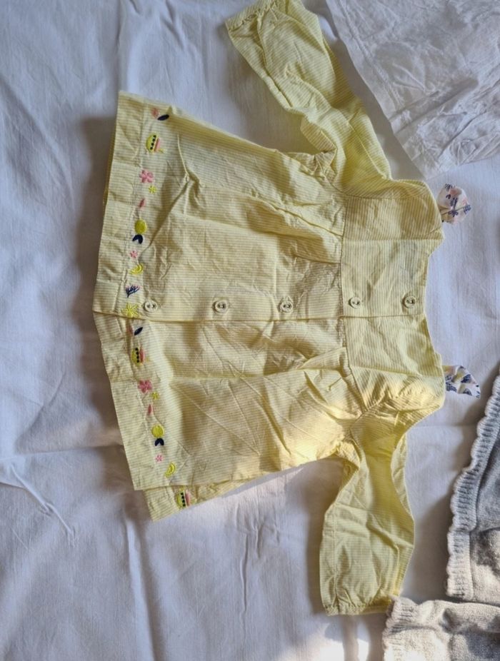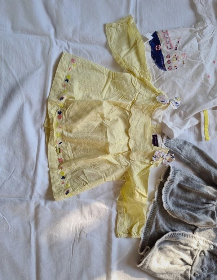 Neuf sans étiquettes jamais porté. Robe et petit haut 6mois le gilet 12mois.