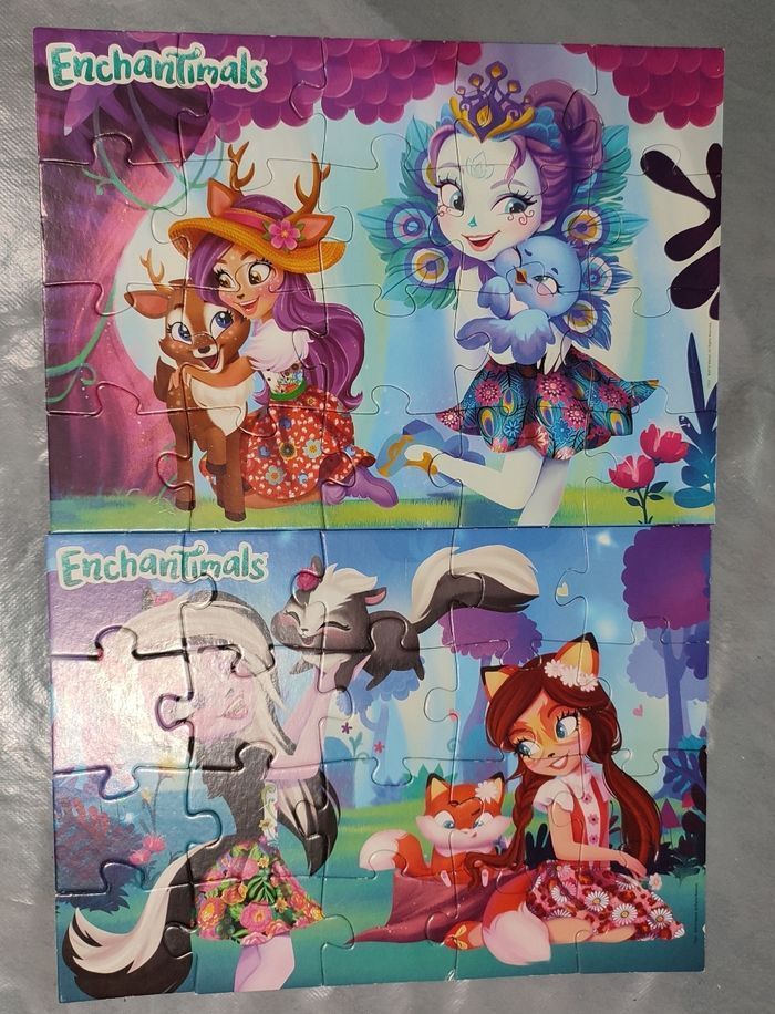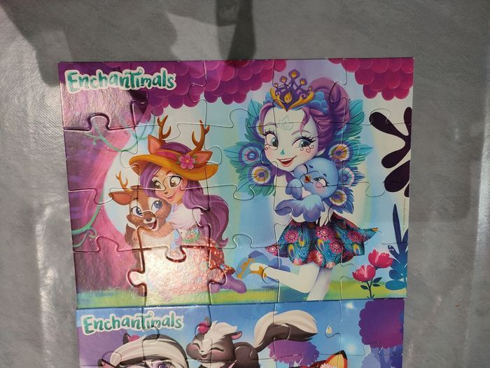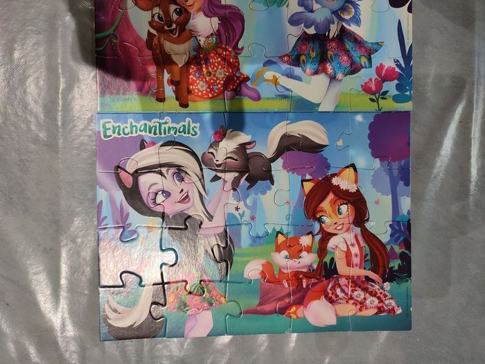 2 puzzles enchantimals de 20 pièces ,les pièces du puzzle sont en bon état, la boîte est un peu abîmée dans les Angles ,choix fille et garçon a partir du 3 mois, jouets, accessoires, petits prix, envoi rapide et soigné CODE PROMO POUR UNE PREMIÈRE COMMANDE SUR BEEBS noté sur la photo de mon profil 😉