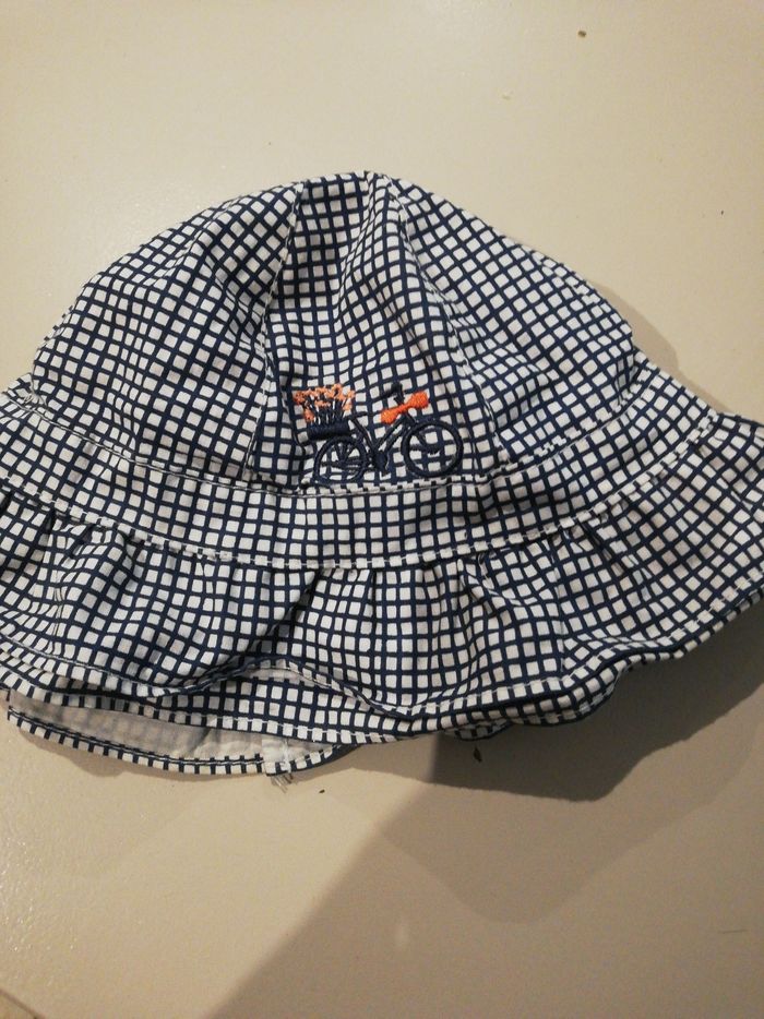Chapeau à carreaux fille 45 cm marine et blanc - photo numéro 1