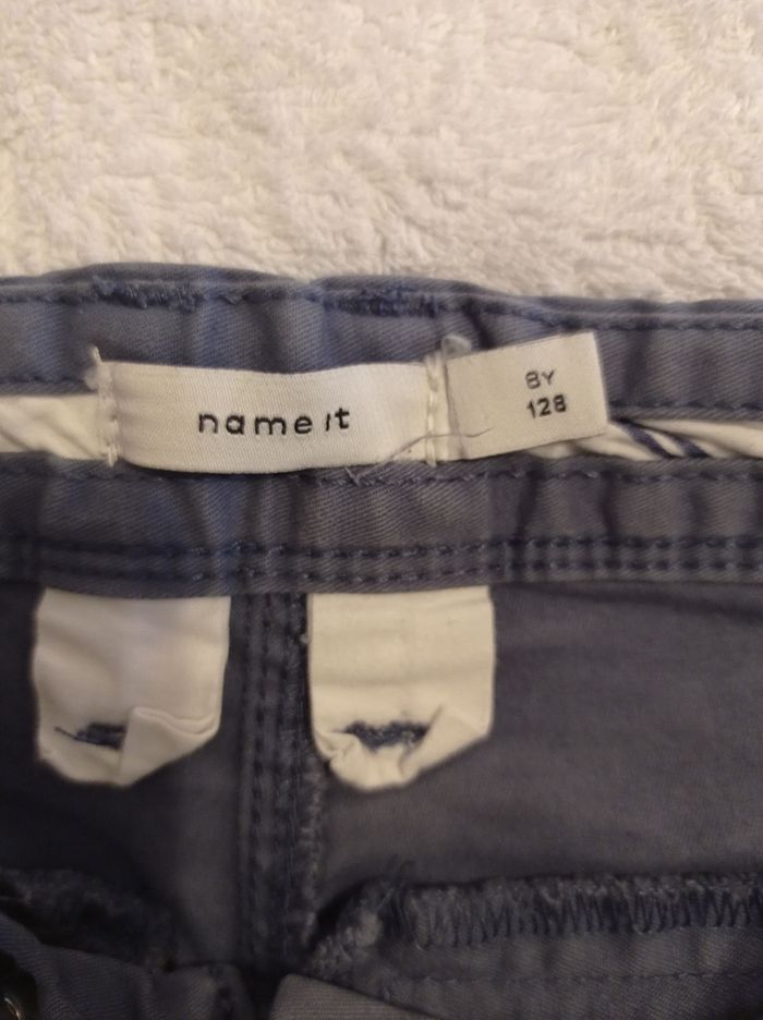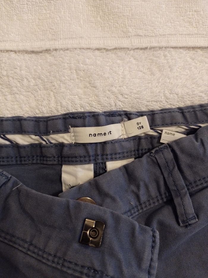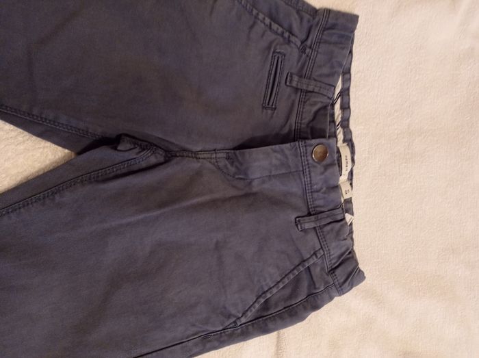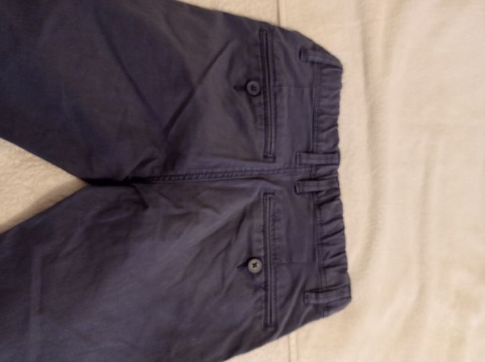 Pantalon en toile bleu taille 8 ans 128 cm bon état porter trois fois deux poches derrière deux poches devant réglage à la taille - photo numéro 3