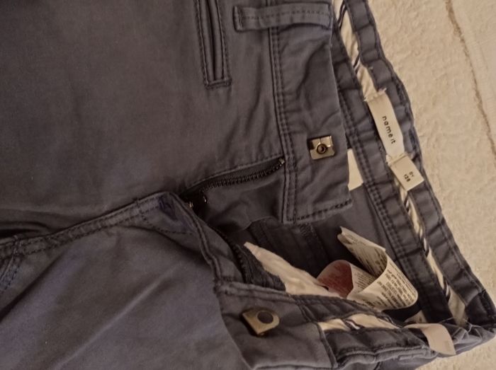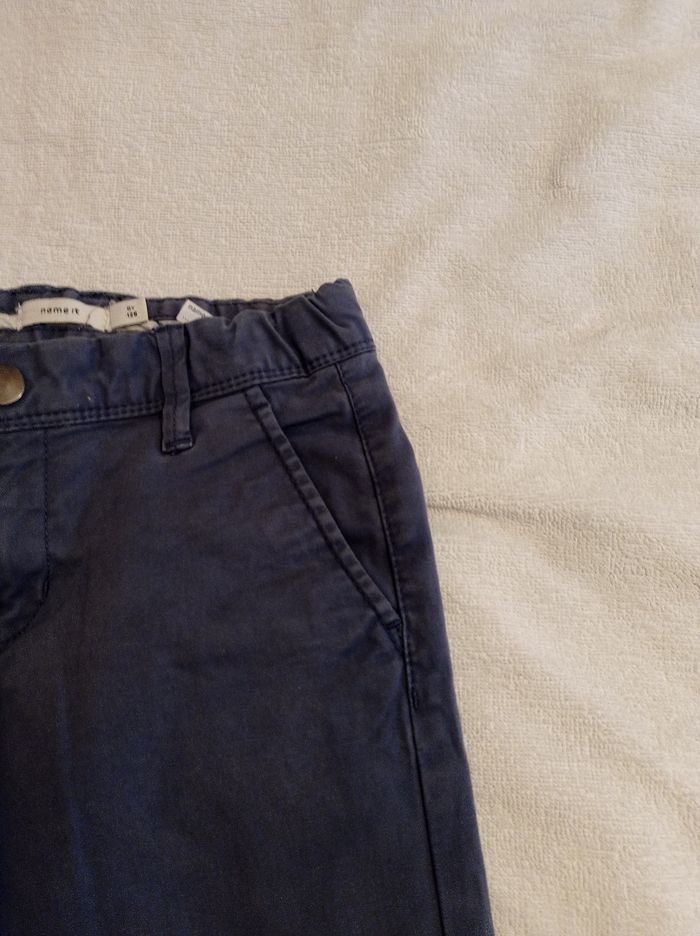 Pantalon en toile bleu taille 8 ans 128 cm bon état porter trois fois deux poches derrière deux poches devant réglage à la taille - photo numéro 10