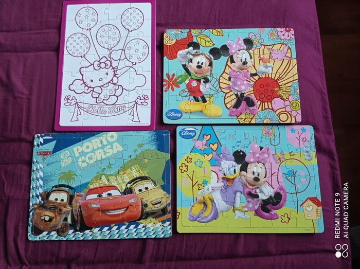 Lot de 4 puzzles Disney, Pixar, hello Kitty dont un à colorier. Carton fin avec support. Très bon état, comme neuf. 👉 Maison non fumeur sans animaux. 👉 Réduction sur lot activée ☺️