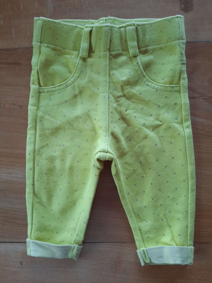 Pantalon KIABI jaune à pois dorés. Taille 3 mois (56-62 cm).