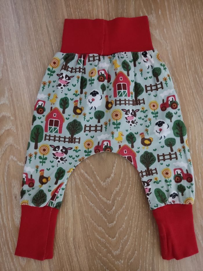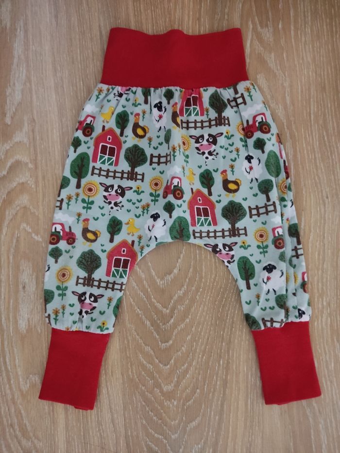 Pantalon sarouel en très bon état. Peu se porter de 3 mois à 12 mois environ.