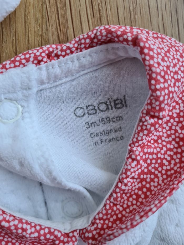 6 pyjamas velours taille 3 mois en bon état. 3 pyjamas marque La Redoute 1 pyjama salopette + bodie ML de C&A 1 pyjama Obaïbi