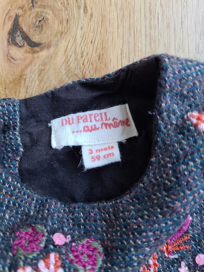 Très jolie robe en laine doublée en coton taille 3 mois 59cm en très bon état. Très peu porté.