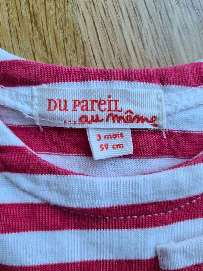 Très jolie robe marinière rouge et blanc avec broderie en bas de la robe. En très bon état, peu porté. Taille 3 mois 59cm