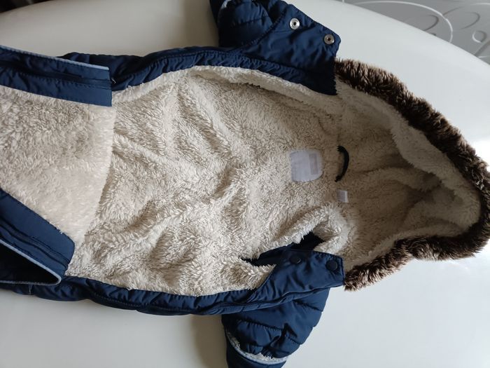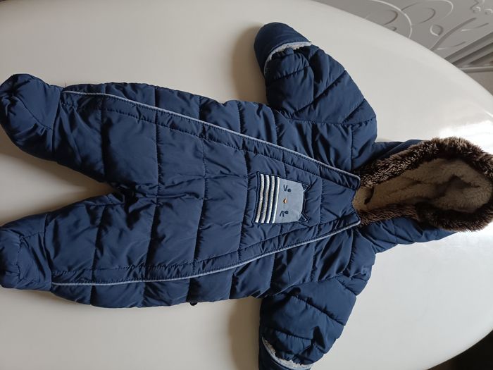 Combinaison pilote obaibi bleu bien chaude et douce à l'intérieur en très bon état. Taille 1/3 mois.