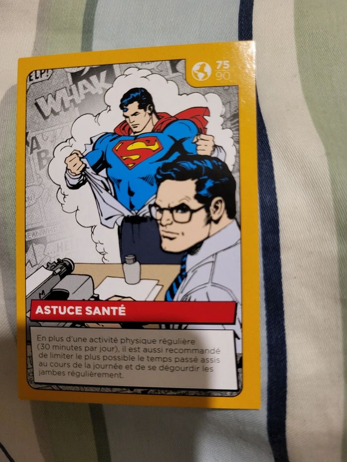 Carte Héros DC Auchan 2022 n° 75/90 astuce santé J'ai bcp de cartes en double, n'hésitez pas à me demander si je ne les ai pas.