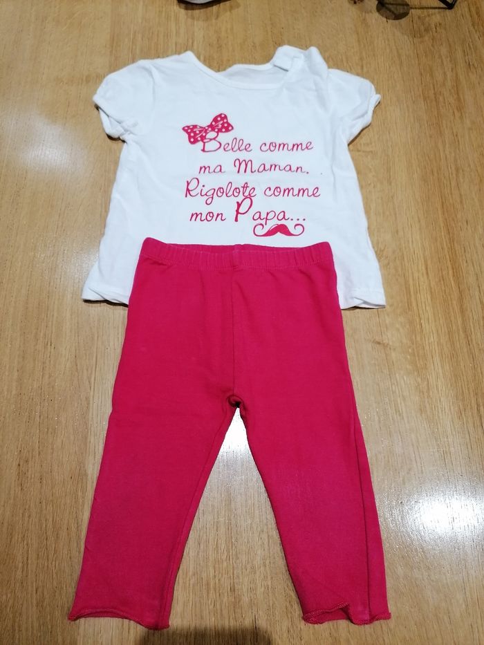 Ensemble jogging fushia dpam + t shirt MC sans marque 12 mois