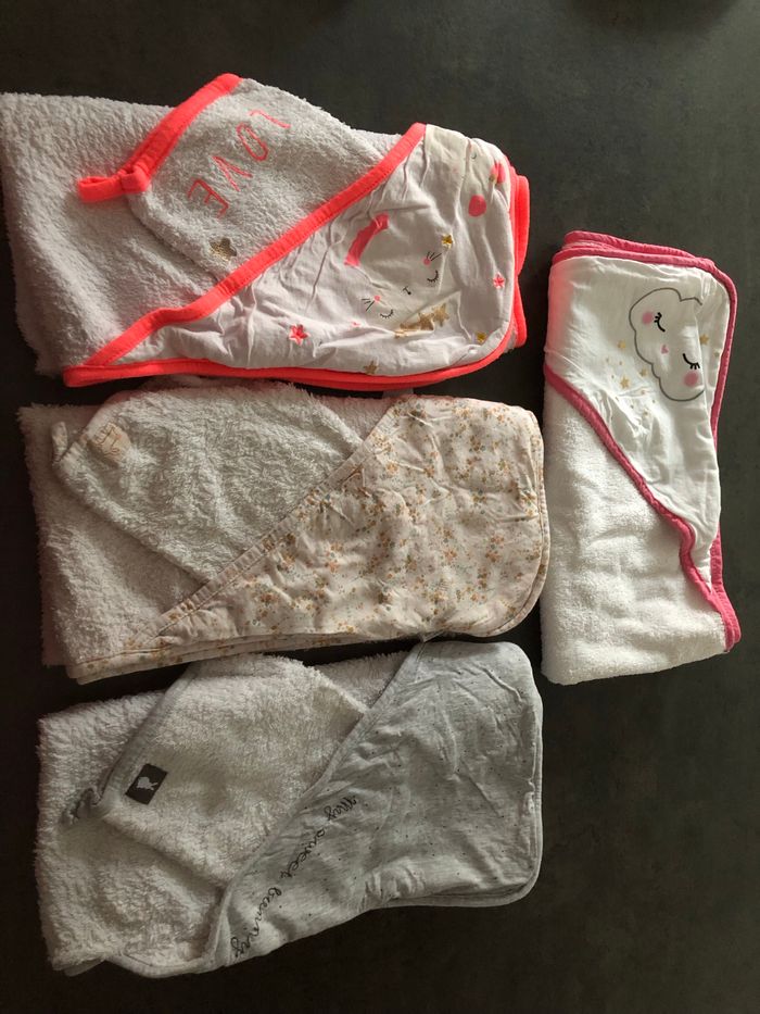 1 cape sans le gant de toilette. 1 a une petite tache 1 a pris une teinte rose à certains endroits