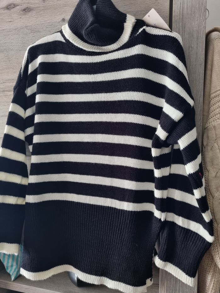 Pull marinière col roulé