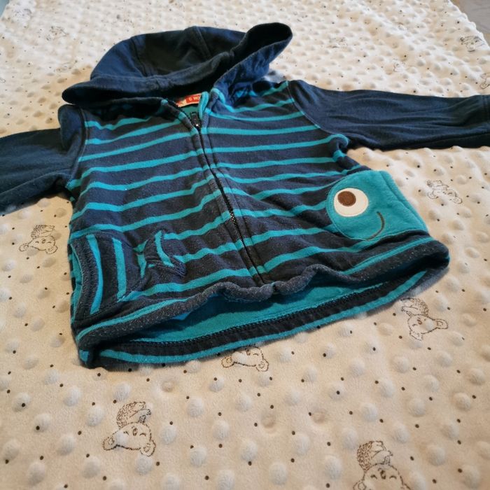 Couleur un peu passe à certains endroit. Pas trou ni tâche Capuche, poches et fermeture OK