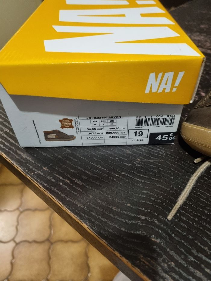 Vend chaussure en taille 19 en parfaite état très peu porter. Avec boîte d'origine Acheter 45€ chez Gemo je l'ai revend à 22€.