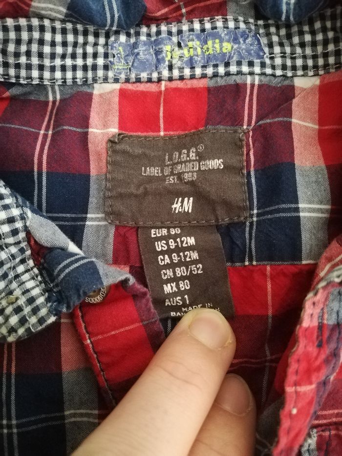 Chemise à carreaux h&m 9 12 mois rouge et bleu - photo numéro 3