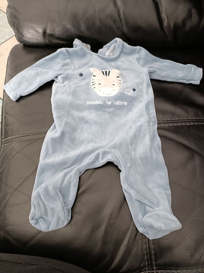 Vends pyjama garçon 1mois / 53cm Petite imperfections au niveau du bouton d accroche fessier mais cela n'empêche en rien de le clipser.