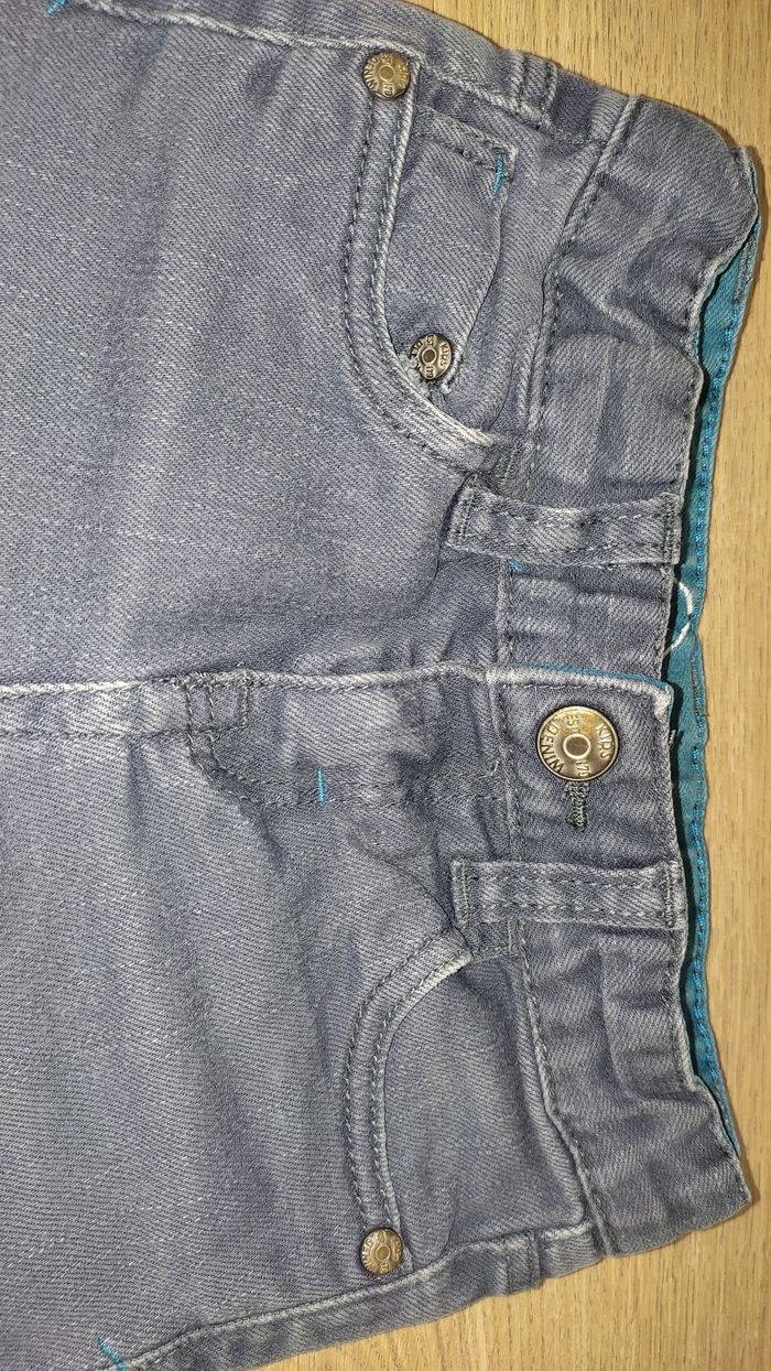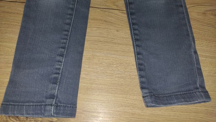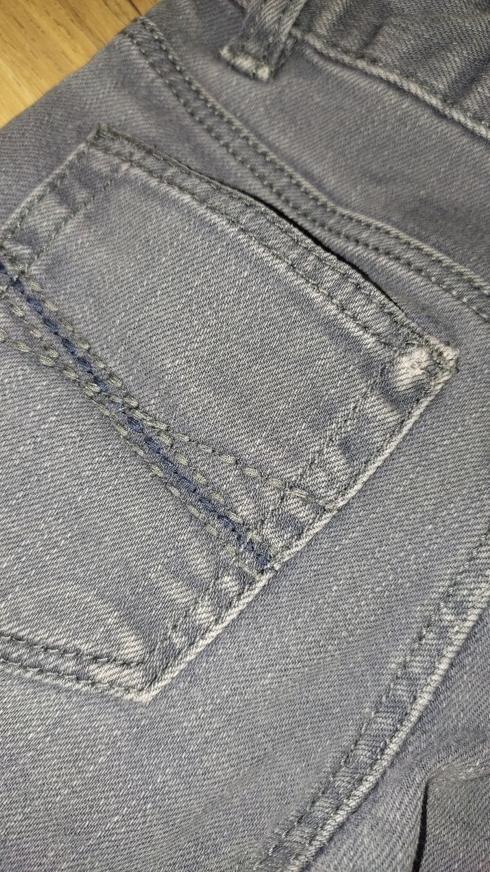 Jean slim de couleur gris. Léger défaut au niveau de la poche arrière (détail à l'avant dernière photo) mais ne gêne en rien.