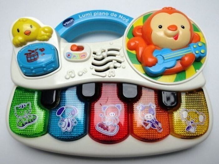 Vtech Lumi piano de Noé lumineux interactif 10 mélodies 2 chansons instrument musique éveil lot SOP77 A saisir : 9€ DESCRIPTION :  Un piano lumineux pour chanter avec les Noé et ses amis !   Un petit singe tout mignon qui chante avec Bébé sur des sons de guitare, piano et cymbales !  Grâce aux 5 touches de piano lumineuses Bébé découvre les animaux, les instruments et joue des mélodies.  Bébé doit tourner un disque pour faire danser Noé le petit singe.  10 mélodies et 2 chansons. Fonctionne avec 3 piles LR6 AA non incluses.  Age : 6-36 mois Ref : Lumi piano de Noé Vtech 80-150805  Expédition sous 24-48h Remise en mains propres possible à MEAUX (77100) quartier de la gare ou à :  . Trilport, Varreddes, Germigny-l’Evêque, Lizy sur Ourcq et May Acy en Multien. . Chessy TGV Serris / Magny le Hongre/ Marne-la-Vallée / Val d’Europe / Claye-Souilly et Villeparisis.