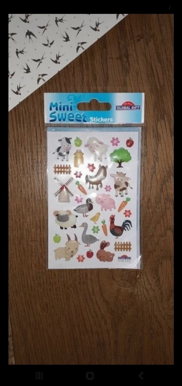Feuille cartonnée imprimée oiseau hirondelle recto verso blanc et plaque de mini stickers Mini Sweet la ferme animaux