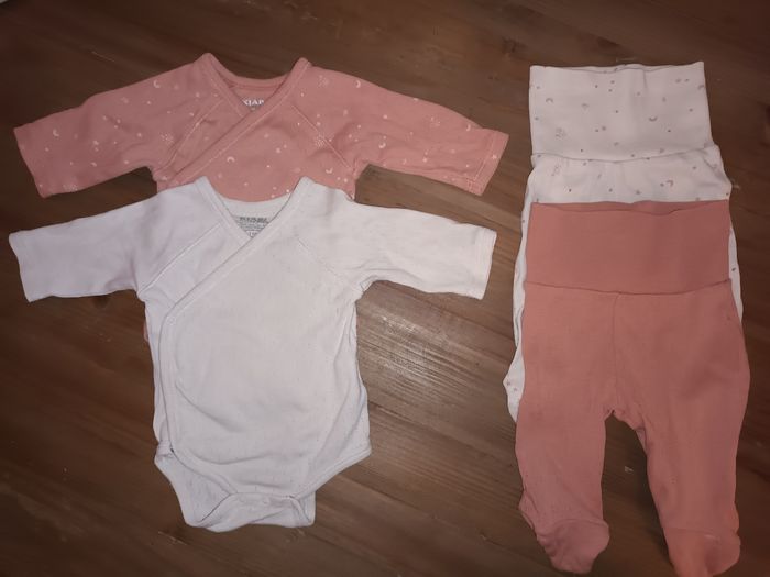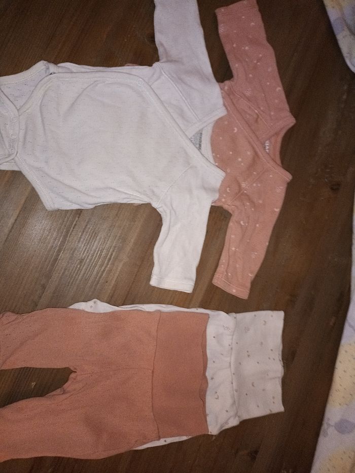 2 bodies et 2 bas (leggings avec pieds) kiabi 1 mois fille - photo numéro 1