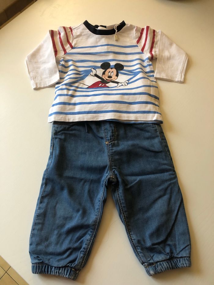 Ensemble taille 6 mois comprenant : - 1 tee shirt Mickey marque orchestra - 1 jean marque pareil au même Excellent état