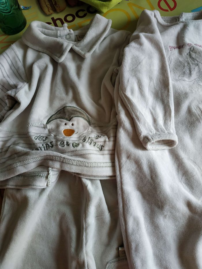 Pyjama 6 mois lot de deux. État lavé et porté plusieurs fois. Le blanc tape à l'oeil Le bleu clair tout simplement #6mois_severinedubois40990