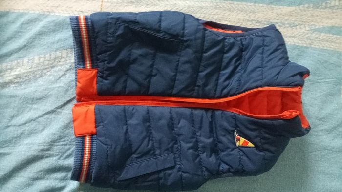 Doudoune sans manche réversible. 1 côté bleu marine & 1 côté orange Taille 3 ans Très bon état
