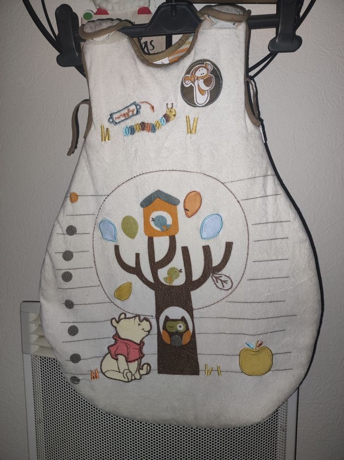 Gigoteuse Winnie l'Ourson pas de taille inscrite mais taille 03 mois dessin légèrement craquelé voir photos