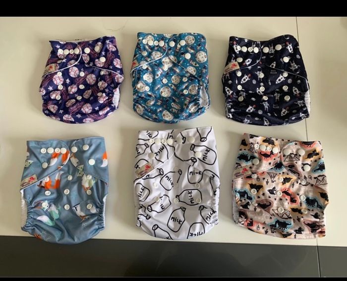 Bonjour je met en vente 12 couche lavable te1 neuf juste laver 1 fois suite à une erreur de taille avec il y a également 12 insert neuf et 12 insert utilisé quelque fois mais en très bonne etat ainsi que 5 autre couche très peu servi Prix négociable dans la mesure du raisonnable