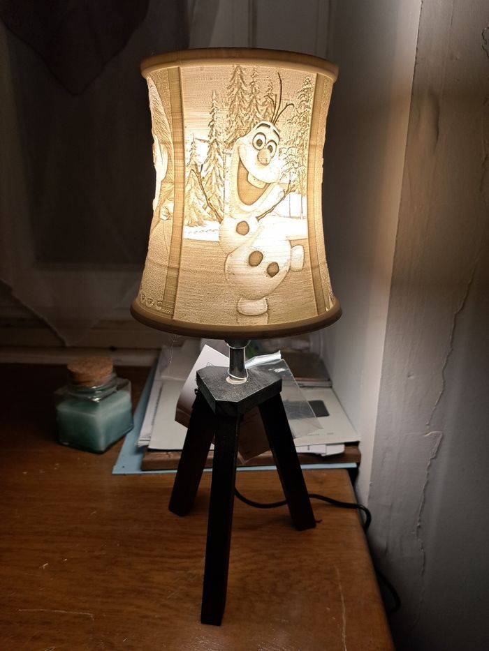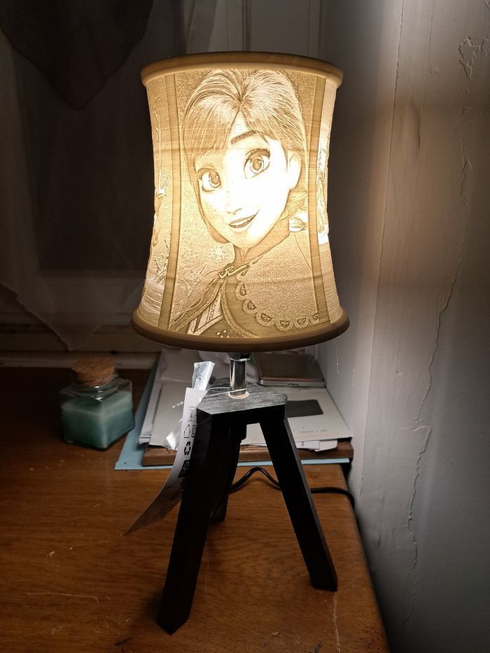 Lampe de chevet en lithophanie reine des neiges imprimé en PLA pied en bois douille ampoule petit culot à visser Taille environ 34cm Vendu sans ampoule Mis en colis sous papier bulles et calage